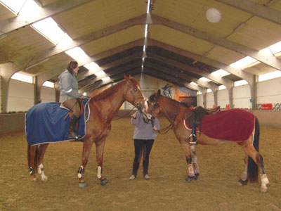 - 1 manège couvert de 17 x 45 mètres avec piste en sable pourvue de pare bottes de 120 cm de hauteur.